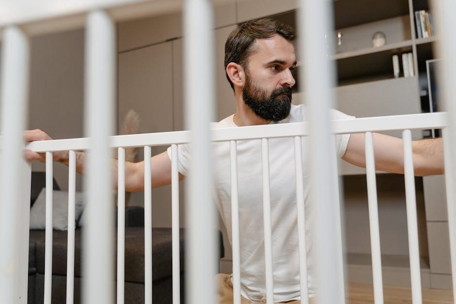 Ensuring the crib’s stability is crucial for your baby’s safety. Always tighten all bolts and screws firmly during assembly and check them periodically. Use a level to confirm the crib is even and properly balanced. Place the crib on a firm, flat surface, avoiding soft flooring like carpets or rugs. Ensure the mattress fits snugly within the crib frame without any gaps. Never overload the crib beyond the recommended weight limit. Regularly inspect the crib for signs of wear or damage, addressing any issues promptly; Keep the crib away from windows or blinds to prevent accidental entanglement or falls. Stability ensures a safe sleeping environment.